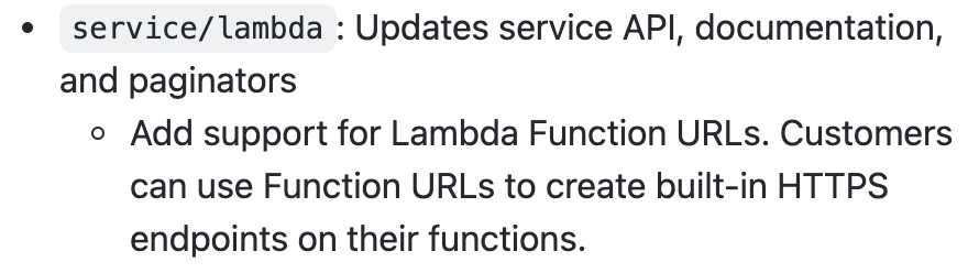 All the cool kids are using lambda.CreateFunctionUrlConfig()